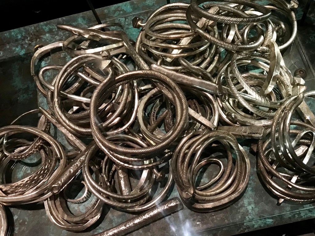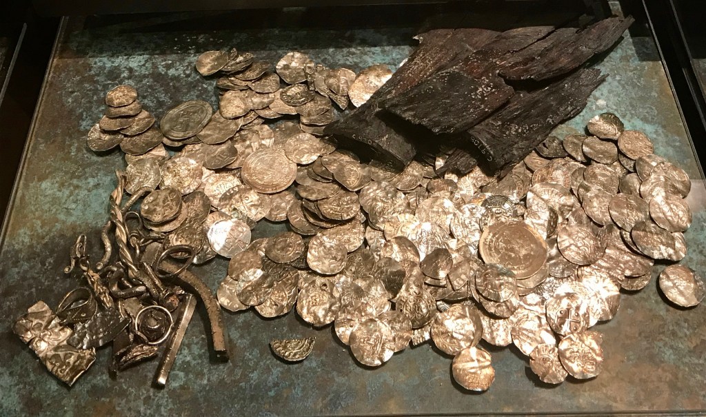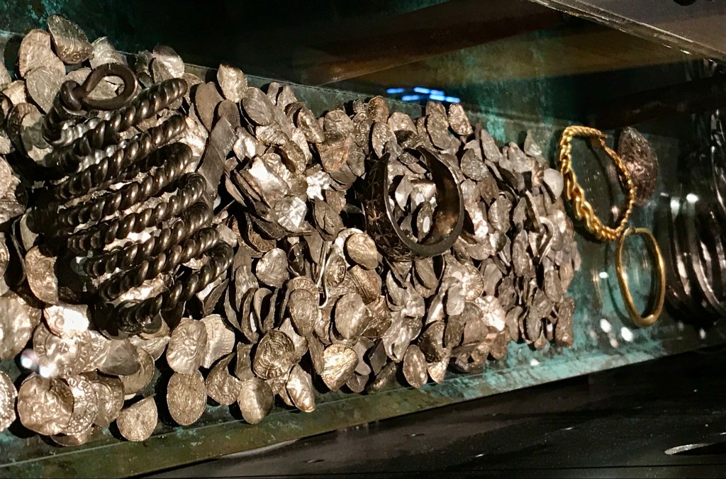 The Viking Age was also well-known for the silver and gold hoards that were buried throughout Scandinavia and in other parts of Europe. Gotland Museum has an interesting display of the various hoards associated with the island. Many are vast collections of coins from different regions, silver bracelets, gold torques, silver and gold rings, beautifully crafted silver brooches for cloaks and the elaborately engraved square brooch used by women. Most of the items in these hoards have been recovered during excavations at specific archeological sites but in a few occasions, including a hoard of gold coins stored in a clay jar, an industrious rabbit warren disturbed the buried treasure, bringing the hoard once more to the surface.