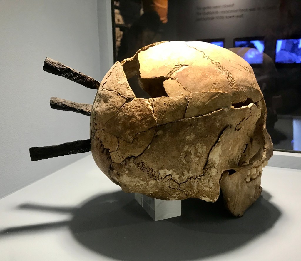 The Battle of Visby was fought in 1361 when Danish forces invaded Gotland Island led by King Valdemar IV and the well-trained Danish army, the force numbering around 2000-2500. In contrast, the defending forces of Visby numbered only 2000 and were not trained infantrymen, or were older individuals, those who had survived previous battles and still bore the marks of injury. The result was a massacre, the Danish forces taking Visby and leaving many of the surviving defending forces of Visby so badly injured they later died from their injuries. The grisly remains from the mass graves outside Visby reveal the savage injuries caused by swords and axes, the damage inflicted from the mace and other battle weapons broke bones and shattered skulls. The healing of these injuries was inadequate and health of the individuals was compromised, with the bones badly set, often twisted and likely leaving the limb unusable.