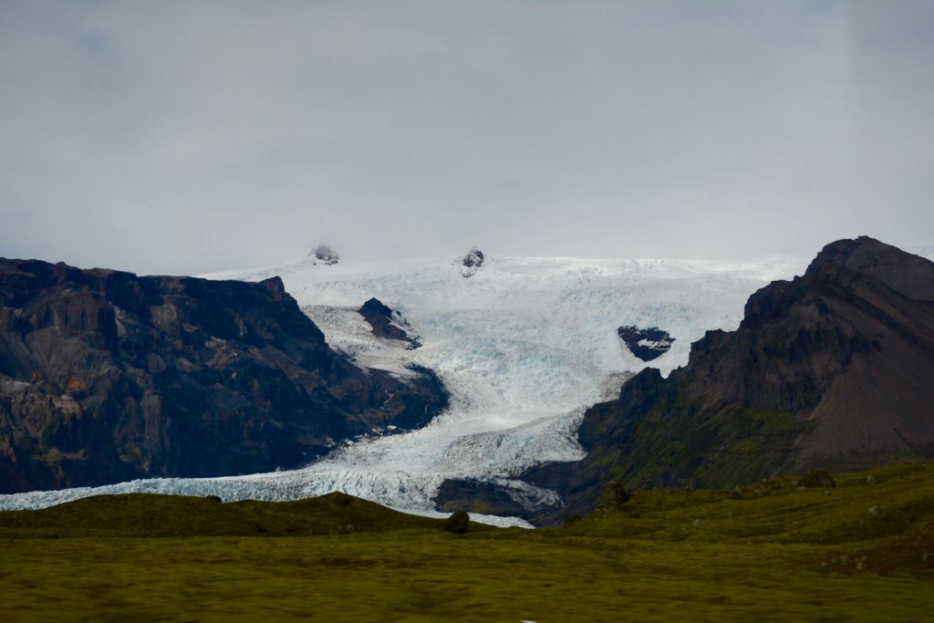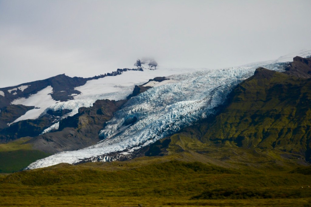 Southern Iceland boasts stunning waterfalls, glaciers and volcanoes. The largest glacier in Europe, Vatnajökull is located within Vatnajökull National Park which contains the largest and most active volcanoes in Iceland. On the southern side of Vatnajökull, the glacier completely covers the volcano beneath. Known as Öræfajökull, the glacier enveloping the volcano is also the highest peak in Iceland with the mountain peak, Hvannadalshnúkur reaching 2, 000 m above sea level. Although peaks in Iceland are not high but European standards, the entirety of the huge glacier Vatnajökull, envelops several active volcanoes. The size of Vatnajökull is impressive with the Ring Road skirting the edge of the glacier along the coastline from just east of Vik and continuing past Hof which was the furthest extent of our tour.