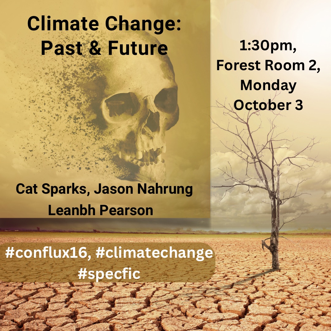 “Climate Change: Past and Future” was a fascinating panel exploring the emergence and importance of climate fiction in publishing scene. Discussions ranged from the emergence of man-induced climate change to the reality of how climate change is affecting everyday existence and how that has seen the explosion of dystopian fiction. An important comment by Cat Sparks was that perhaps we should be focusing in our writing of turning the current climate crisis around and sending a message of hope in doing so.