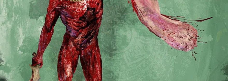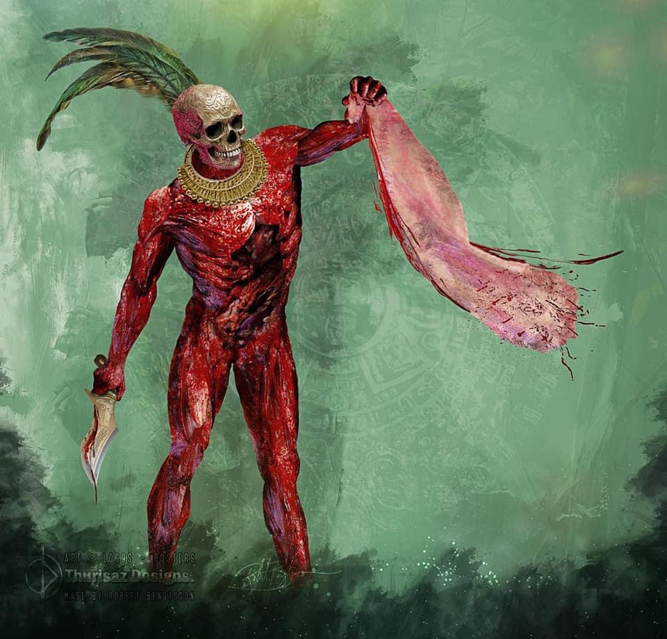 Xipe Totec was so closely connected to the sacrifices that were offered to him and in inconrgeaphy, he is depicted as a flayed god wearing the skin of his victims over his own body.